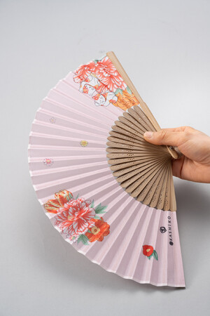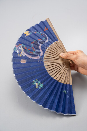 九谷色絵の作家がデザインした扇子とブランド専用の扇子袋をセットにした商品です。高級化粧箱に入っているのでギフトやインバウンド向けのお土産に最適です。
