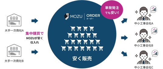 MOZU株式会社[モズ](本社:東京都港区、代表取締役:CEO 野口 真平・COO 竹内 達也、以下「当社」)は、2024年3月より、建築現場で使用されるエアコン、給湯器、壁紙などの資材を集中購買し、登録会員へ格安に提供するマーケットプレイス「MOZUオーダー」(https://order.pcs.mozu-inc.jp/abouts)の提供を開始し、リリース初月となる3月の注文額が2,600万円を超えたことをお知らせいたします。 本サービスは、新築工事・リフォーム、原状回復工事などのシーンにおいて、工務店が調達する建築資材の仕入れコストを削減し、より便利に発注、納品、支払い管理ができるデジタルサービスです。