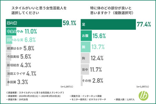 株式会社New Apparel Group(本社:大阪府大阪市)は、20代女性1000人を対象に「スタイルがいいと思う女性芸能人ランキング」を調査しました。