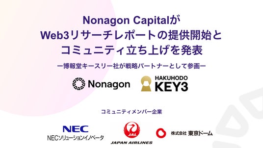 株式会社博報堂キースリーは、株式会社博報堂とAstar Network開発の知見を活かし開発等を行うStartale Labs JapanのCEO渡辺創太氏が、Web3のマスアダプションを実現するために設立したジョイントベンチャーです。同社と弊社は23年12月より、企業のWeb3領域での北米進出を支援する取り組みを進めております。本事業の戦略的パートナーとして、国内企業へのアプローチなどを弊社と協力して進めていく予定です。博報堂キースリー、サンフランシスコ拠点のVCであるNonagon Capitalと協業し、日米企業の海外進出を支援
