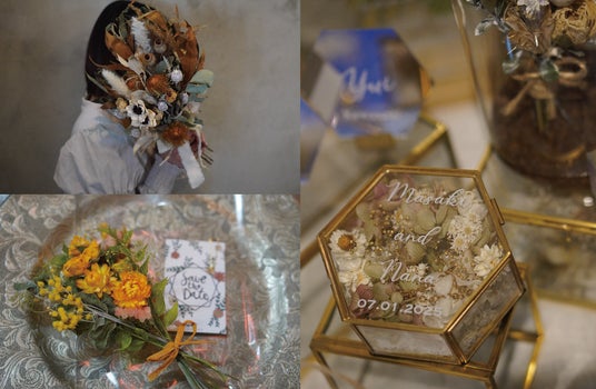 ドライフラワーを使って結婚式や前撮りなどのお手伝いをさせていただきます。