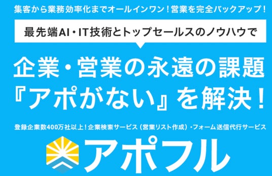そこで当社は「営業活動の“アポイント取得”に貢献し、営業職の人手不足に悩む全国の企業の課題解決を後押ししたい」と考え、最先端AI・IT技術を活用した「AI集客支援システムのアポフル」を開発しました。