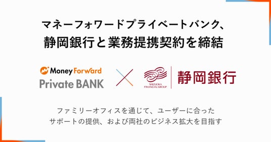マネーフォワードプライベートバンク株式会社は、株式会社静岡銀行と業務提携契約を締結しました。本契約締結により、これまで静岡銀行単独で提供できるサービスの範囲が限られていた超富裕層のお客さまに対し、両社で金融から非金融まで幅広い領域でパーソナライズされたサポートを提供できるようになります。