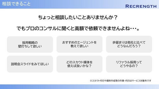 「日本中の企業に、採用顧問を。」をミッションに採用コンサルティング事業を展開。会社名 :リクレングス株式会社