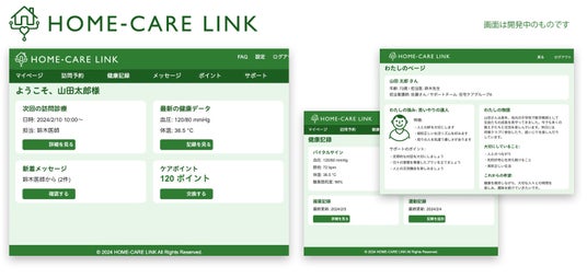 「HOME-CARE LINK」は、在宅医療のDXを推進し、医療情報の可視化と共有化を実現するソリューションです。在宅医療を提供する医療施設向けに、同ソリューションの導入・構築と施設内の医療情報のプラットフォームへの統合を支援します。これにより、在宅医療特有の煩雑な業務の効率化を図るとともに、患者の日々のバイタルデータ、投薬情報、日常の気持ちの変化などのデータを患者本人、家族、医療従事者間で共有することで、在宅医療の質を向上させます。