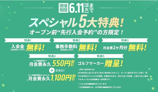 特典適用での入会をご希望の方は、まずは無料先行入会予約(6月11日まで)をお済ませの上、詳細案内をお待ちください。