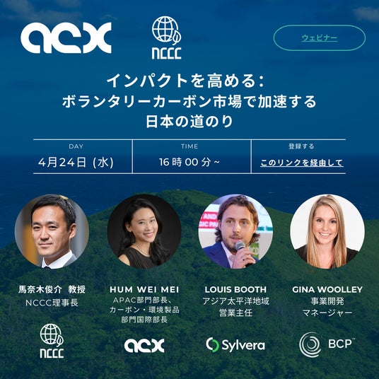 ナチュラルキャピタルクレジットコンソーシアム (NCCC) とACXは、ボランタリーカーボン・マーケット(VCM)と日本における持続可能性の推進についての意見交換イベントを共催することになりましたので、是非ご参加下さい。