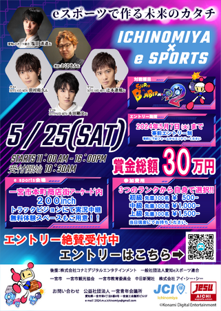 一宮市に拠点があるコナミさんのゲームソフトである、みんなが知っている『ボンバーマン』でeスポーツ大会!!