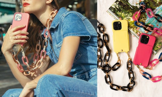 『Louvini Paris』のケース「MILO」(写真左)「LOU」(写真右)シリーズと、チェーン「CHIARA」シリーズ