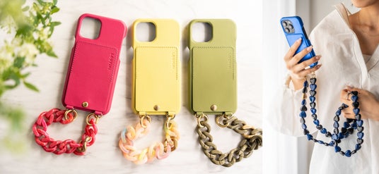 『Louvini Paris』のケース「LOU」シリーズと、ストラップ「ZOE」(写真左)「CUORE」(写真右)シリーズ