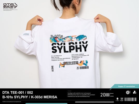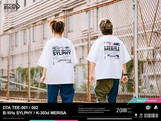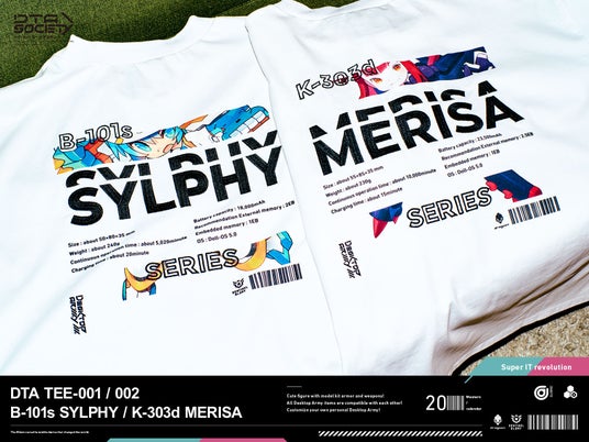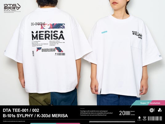 本ブランドの第1弾商品として、DTAのフラグシップキャラクターである「B-101s シルフィー」と、DTAのvol.27で販売された「K-303d メリッサ」をフィーチャーしたTシャツを2024年6月24日(月)12時より予約販売いたします。