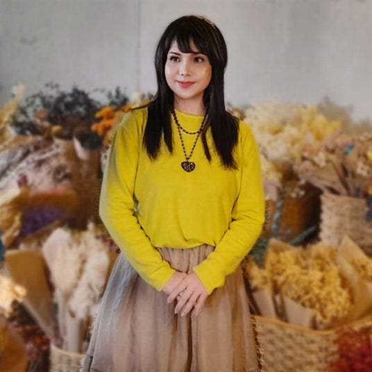 現在、彼女は花だけでなく植物全般に関する作品でもその卓越した才能を発揮しており、数々の企業やイベントで展示活動を行う。また一方では幼稚園や障害者施設でのボランティア活動にも積極的に参加し、地域社会への貢献を続けています。