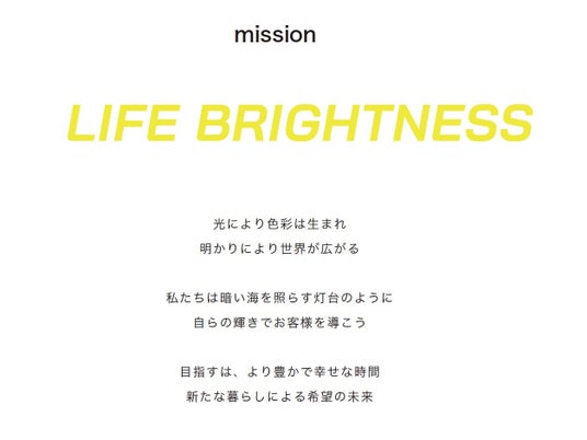 「LIFE BRIGHTNESS」という新しいブランドミッションの下で、私たちの企業は、光がもたらす無限の可能性を探求し、お客様一人ひとりの生活を豊かで明るいものへと導きます。光により生まれる色彩と明かりが世界を広げるように、また暗い海を照らす灯台のように、私たちは自らの輝きでお客様の道を照らし、より豊かで幸せな時間を提供します。