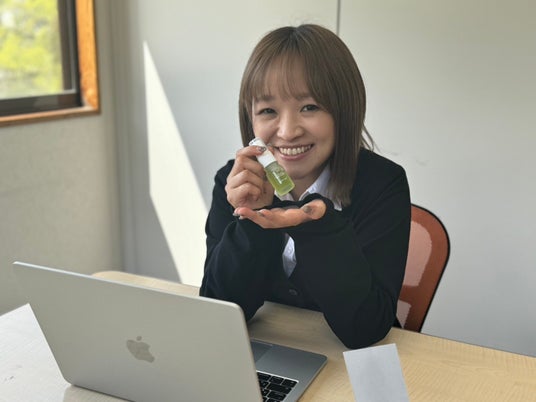 「デスクで、かんたんにリラックスできます。」フローラルの香りが好きで、仕事の合間などにリラックスをしたいときにアロマスプレーを活用しています。女性が多い職場なので、デスクにコンクリートディフューザーを置き、みんなで共有しながら使っています。