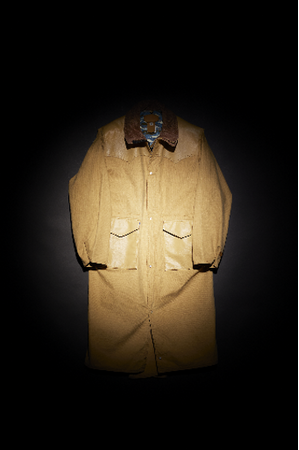 もともとは馬乗りの為に開発されたこのランチ コートはドットボタンで裾をパンツの様にすることで馬にまたぐ事ができるディティールを残している。