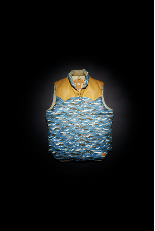 Rocky Mountain Featherbedのオーソドックスなデザインはそのままにナイジェル・ケーボンらしいファブリックセンスを生かしたダウンベスト。