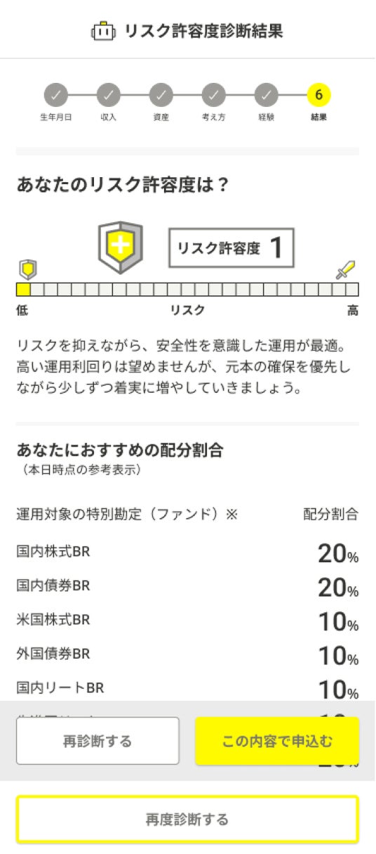 リスク許容度診断およびポートフォリオの参考提示(どなたでもご利用できるサービス)