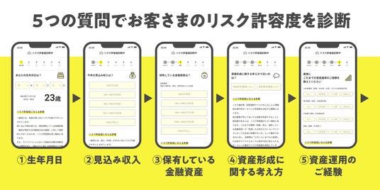 「リスク許容度(資産状況や運用方針など)」に合わせた投資先等の資産形成アドバイスを受けられるシステムです。
