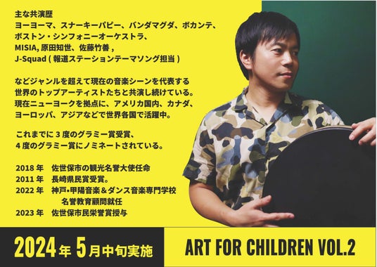 長崎県佐世保市出身のドラマー、パーカッショニスト<小川慶太>による地元の子供たちに音楽の魔法を届ける特別なイベント【Music for Children ~おもちゃのチャチャチャ~】の開催が決定しました。佐世保市の特設サイトではクラウドファンディングがスタートしました。