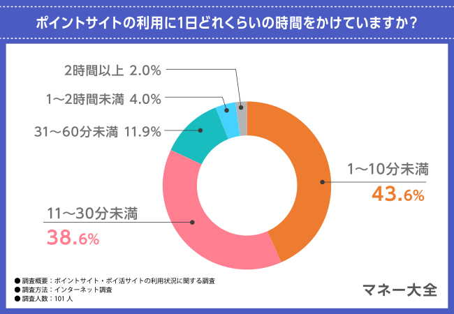 ポイントサイトの利用時間は『1~10分未満』が43.6%で最多