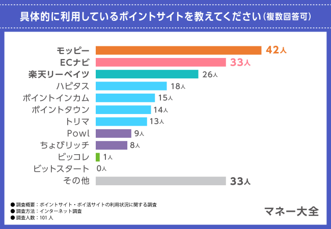 多くの方が1つのサイトではなく、複数のポイントサイトを併用しているようです。