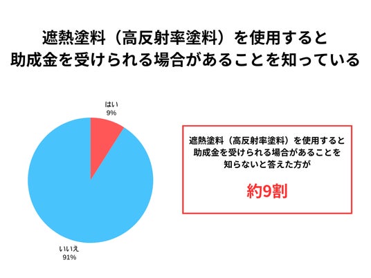 ・約9割の方が、遮熱塗料(高反射率塗料)を使用すると、助成金を受けられる場合が