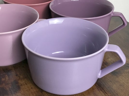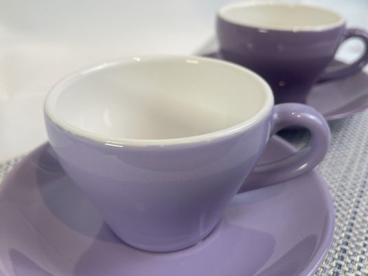 BLRE:ViOオリジナル カップ&ソーサー 浅紫色(手前)古代紫色(奥) 販売価格 2,500円(税込)