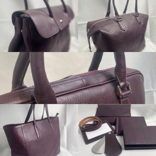 イタリアンレザーは、イタリアの有名タンナーであるバダラッシカルロ社の上質な革を使用した逸品です。一見すると茶色に見えますが、日の光に充てると鮮やかながらも独特の染色ムラによる深みを持ち合わせた独特な雰囲気のある紫(プラムが名前の由来であるプルーニャ)が分かります。名刺入れやマネークリップ、トートバッグやボストンバッグなどを取り揃えています。