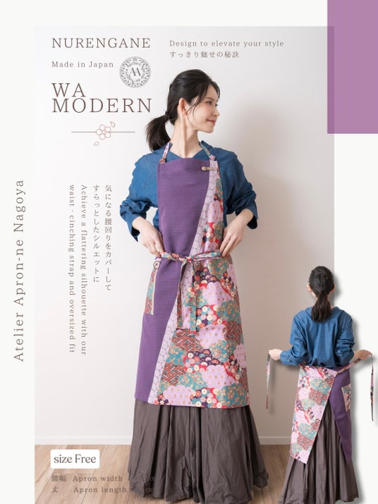 着物生地でできた洗えるエプロン 普段使いや飲食店、トリマーさんやエステサロン、旅館、介護の現場など多くの用途にお使いいただけます。 販売価格12,980円(税込)