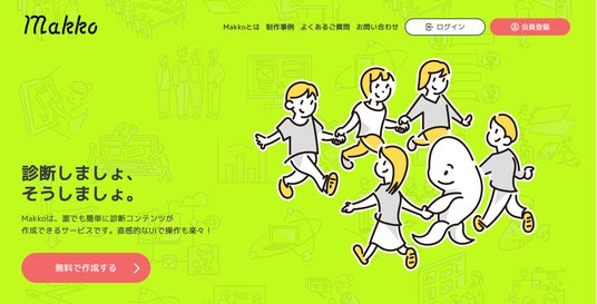 「Makko」は、専門知識不要で、診断、クイズ、検定、アンケートなどのコンテンツを直感的に作成できるサービスです。