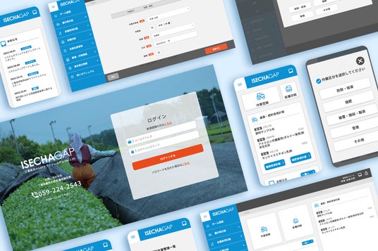 【WORKS02】三重県伊勢茶GAPクラウドシステム(ISECHA GAP)三重県伊勢茶GAPクラウドシステム(ISECHA GAP)は、三重県の美味しいお茶を世界へ発信するために、防除(農薬)の管理や施肥(肥料)の管理はもちろん、摘採から製茶までワンストップシステムです。農林水産省が作るFAMICを連動させるなど、デザインからシステム構築を手掛けました。