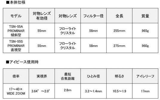 左:TSN-55S PROMINAR(直視型) 右:TSN-55A PROMINAR(傾斜型)