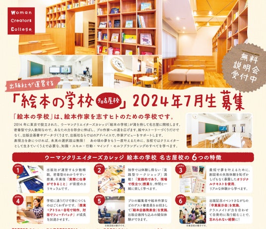 「ウーマンクリエイターズカレッジ「絵本の学校」名古屋校」は絵本作家になる夢を叶える学校です。現在、第2期生の募集も行っていますので、ぜひご検討ください。