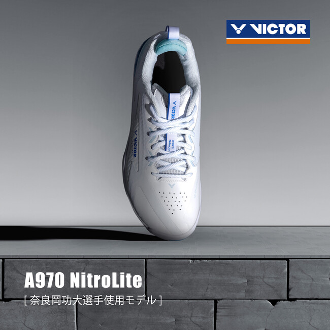 奈良岡選手の足元を支えるシューズは「A970NitroLite」。バドミントンの激しい動きを研究し尽くしたVICTORならではのテクノロジーが凝縮されています。足の負担を軽減し、軽くて快適にプレイが持続できます。