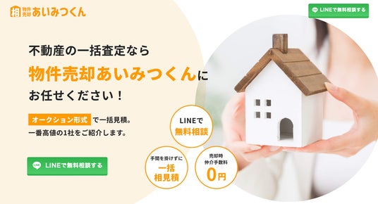 株式会社アクティブは6月11日、不動産の売却で相見積もりを考えてる方を対象にしたサービス「物件売却あいみつくん」をリリースしました。「手持ちの不動産を高く売るために、複数の会社で比較したい」「 一括見積もりだと複数の会社から個別に電話やメールが殺到して大変」。そんな人たちの要望に応えるのが「物件売却あいみつくん」です。オークション形式で一括見積もりし、1番高値の1社をご紹介します。相談手数料も仲介手数料も一切かかりません。まずはLINEでお気軽にご相談ください。