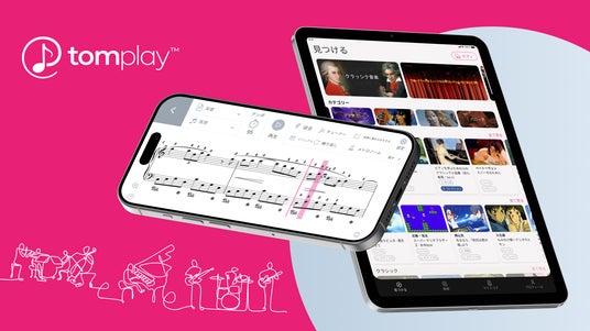 現在、Tomplayでは28の楽器に対応した7万曲以上のインタラクティブ楽譜にアクセスが可能。クラシックをはじめ、ポップ、ロック、ジャズ、映画主題歌、アニメソングなど、幅広いジャンルから、初心者から上級者までのすべてのレベルに応じた楽譜を収録しています。