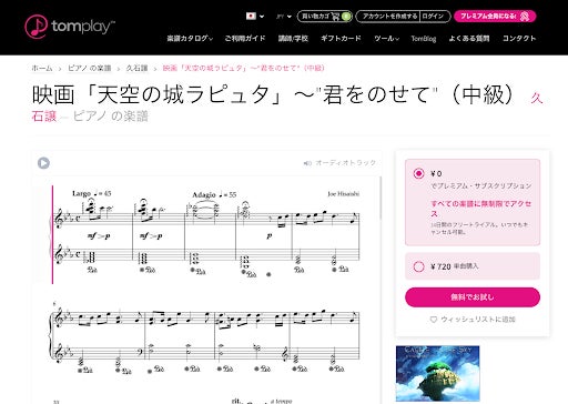 さらに日本ユーザーにとって親しみ深い日本の楽曲やアニメソングの楽譜を拡充するなど、より日本人が使いやすくなるようコンテンツの強化を行いました。Tomplayでは、楽譜を単曲購入することが可能で、印刷も可能。またサブスクリプションに登録することで、全楽曲の楽譜が使い放題になります。
