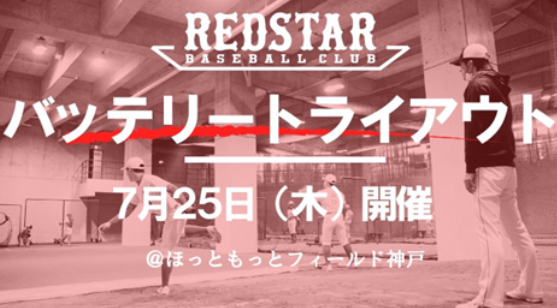 特定非営利活動法人レッドスターベースボールクラブバッテリートライアウト 開催のお知らせ
