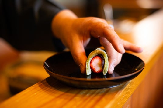 抹茶を練り込んだ皮は抹茶が程よく香り、苺のヘタの緑を感じさせる見た目も美しい一品です。
