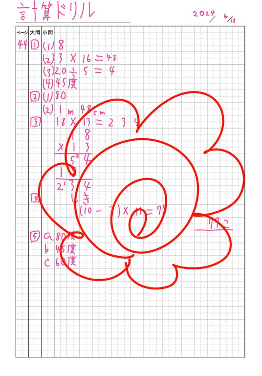 3⃣縦線に合わせて、ページ、大問、小問番号を書きます