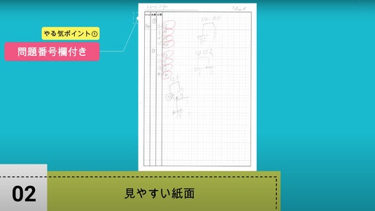 2.ページ、問題番号を書くための欄がはじめから入っている