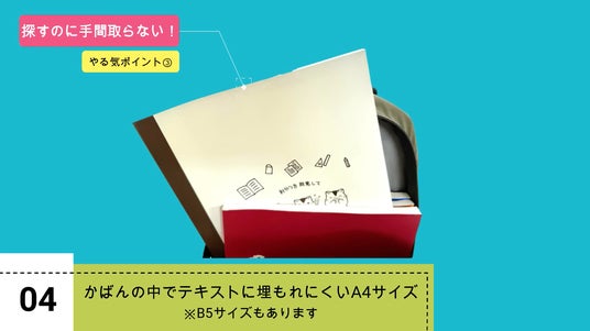 4.塾などのテキストに埋もれにくいA4サイズで、探すのに手間取らない(※B5サイズもあります)
