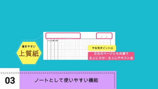 また、紙質は学習用ノートによく使われている上質紙を使用。鉛筆とも相性良く使えます。