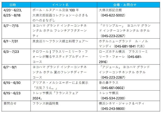 その他詳細は、横浜フランス月間2024 公式サイトをご覧ください。
