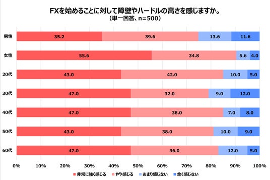 ■「FXを始めることに障壁を感じる」82.6% 女性の方が15.6pt高い