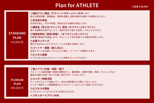 アスリート、ビジネスパーソンそれぞれに向けて【スタンダードプラン】【プレミアムプラン】の2プランを提供します。