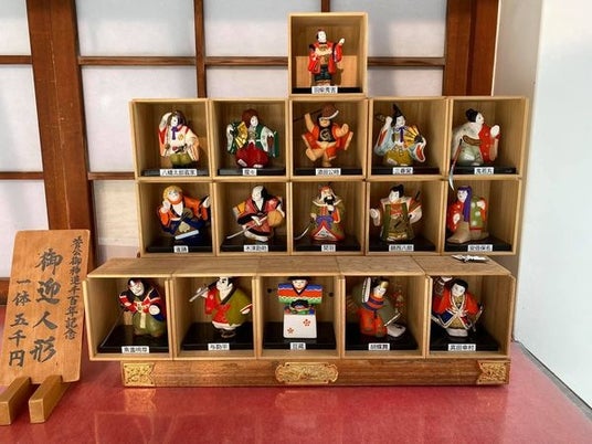 真田幸村、素盞嗚尊、羽柴秀吉、八幡太郎義家、鎮西八郎、猩々、関羽、木津勘助、安倍保名、三番叟、酒田公時、鬼若丸、雀踊、与勘平、豆蔵、胡蝶舞 全16体