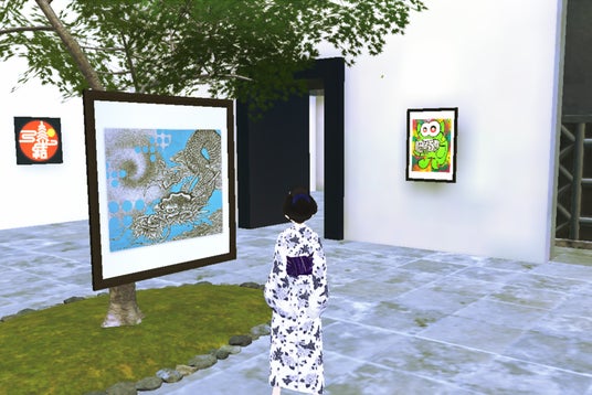 中心街の最奥部に、永遠(とこしえ)の塔があります。塔内部では、国内外で活躍するグラフィティーアーティストの作品を「結KYOTO 画廊/Artgallery」にて展示しています。気に入った作品は、メタバース空間上から購入いただけます。