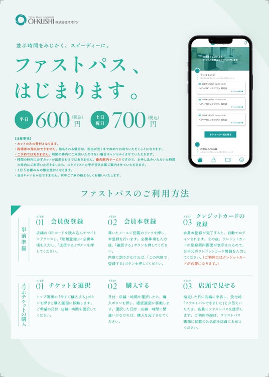 並ぶ時間を短く、スピーディーに。株式会社オオクシが千葉・東京を中心に展開する56店舗の美容室で、7月1日(月)よりファストパス制度がスタートします。
