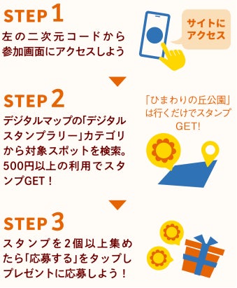 プレゼントはスタンプ2個から応募可能。「ひまわりの丘公園」は無料でスタンプがもらえるので、小野市内の対象スポットをもう1つをめぐるとプレゼントに応募できます。